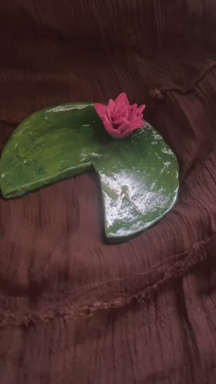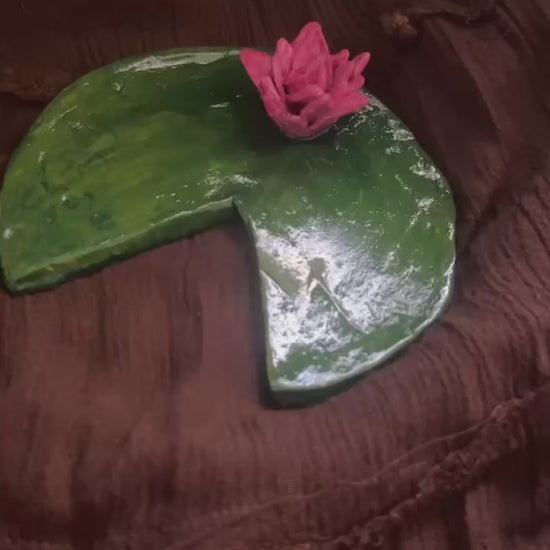 Hand-crafted and painted water lily on a lily pad incense holder. Water lilies were named after a Greek nymph. They’re said to symbolise purity, unity and finding peace and balance.